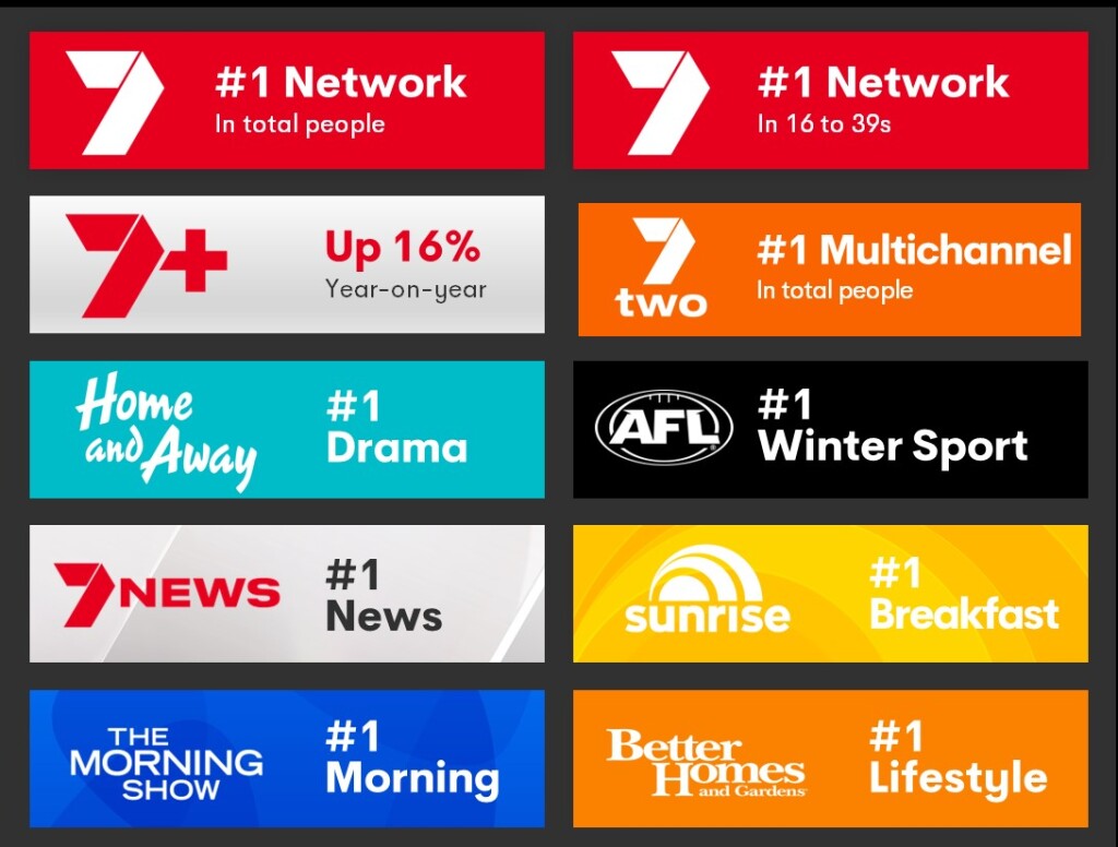 Seven also dominates all key audience demographics in regional markets, ranking #1 in total people, 25 to 54s and 16 to 39s.