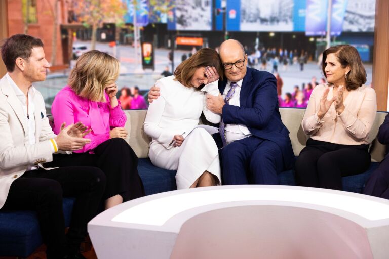 Emotions ran high on set during Friday’s show as Kochie walked through a guard of honour comprised of crew members, producers, fellow presenters and everyone who works behind the scenes to bring the show to life.