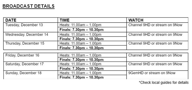 16TH FINA WORLD SWIMMING CHAMPIONSHIPS (25M) MELBOURNE – DECEMBER 13-18, ON CHANNEL 9 AND 9NOW