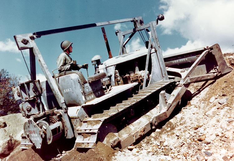 The Seabee’s motto was “”We Build; We Fight.”” Not only did these men have to build bases, but many times they had to put down their shovels or get off their bulldozers and pick up a rifle or machine gun to fend off enemy attacks. The Seabee’s most violent fight was on Iwo Jima, where they went ashore in the first wave with the Marines.