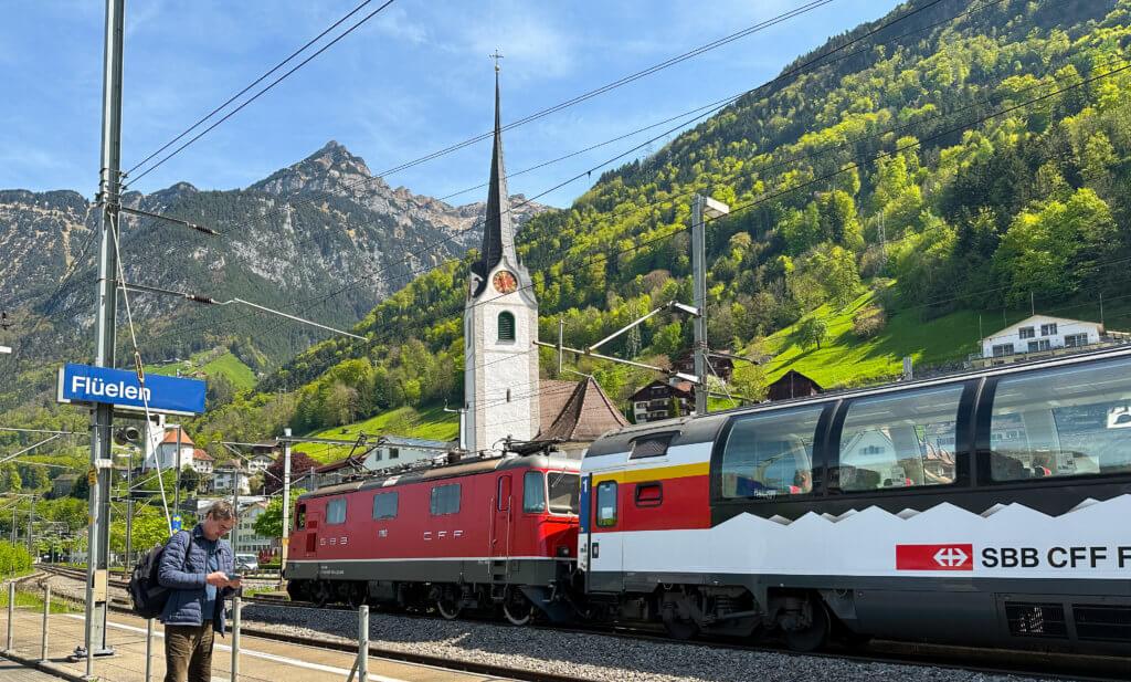 A trip on the Gotthard Express is a journey full of stunning views. From picturesque Lake Lucerne, the Gotthard Panorama Express travels south through the historic old tunnel in the Gotthard massif. On its way to Lugano at the border to Italy, the panorama train offers impressive views of the sun-drenched villages and landscapes of Ticino.