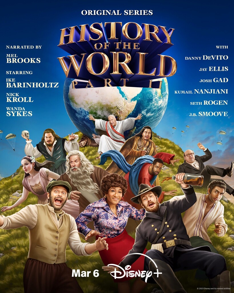 Today, Disney+ unveiled the trailer and key art for the long-awaited, highly-anticipated Original sketch comedy, variety series “History of the World, Part II” starring Mel Brooks, Wanda Sykes, Nick Kroll and Ike Barinholtz.