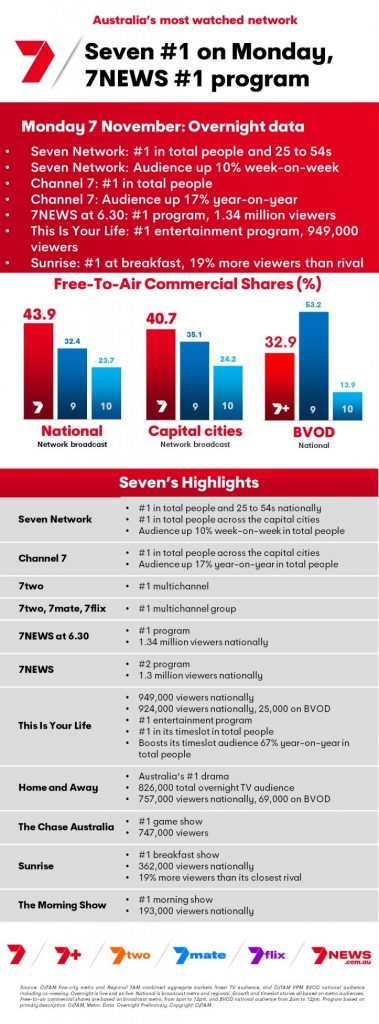 Overnight ratings Monday, 7 November 2022.