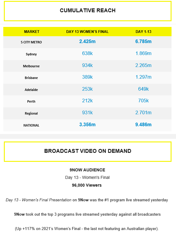 #4 2023 Australian Open Day 6 – Night – 687 000 (+7%)