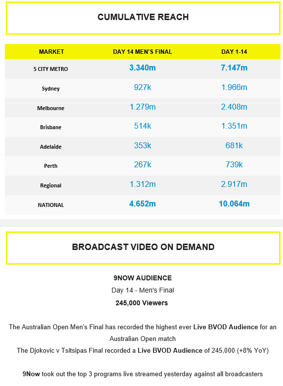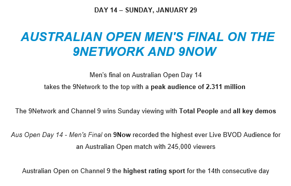 #6 2023 Australian Open Day 7 – Night – 730 000 (+9%)