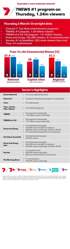 #1 Seven News at 6:30 – 1,322 000 (+3%)