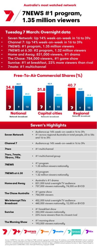 #2 Seven News – 1,347 000 (+3%)