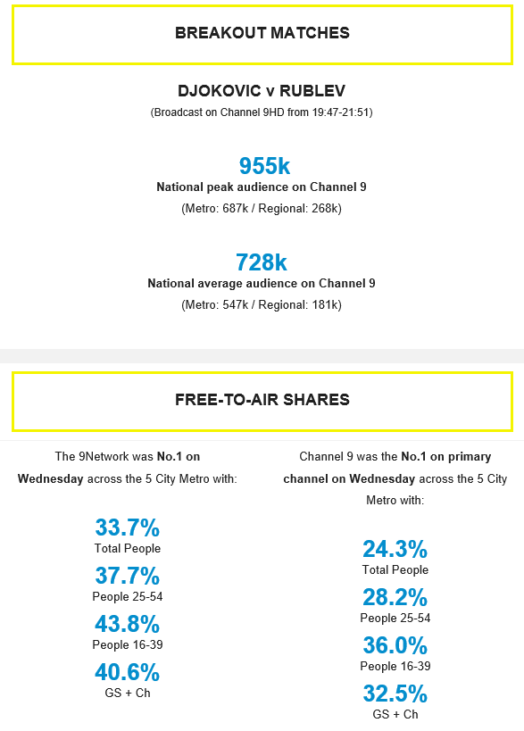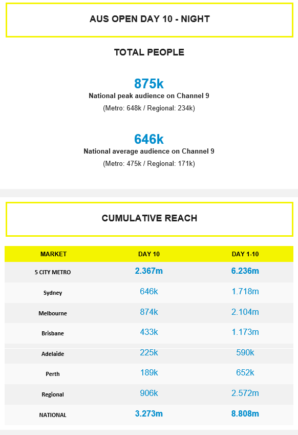 #9 2023 Australian Open Day 3 – Night – 591 000 (+6%)