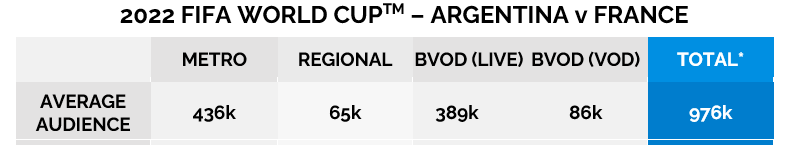 Nearly a million Australians tuned into SBS’s linear television and digital channels early Monday to see Lionel Messi’s Argentinian team triumph over reigning champions France in an epic 2022 FIFA World CupTM finale.