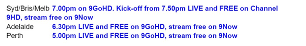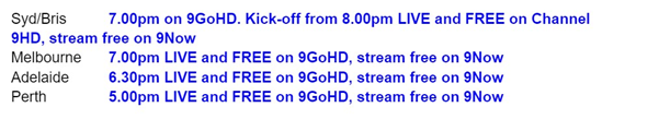 Nine’s coverage from Commbank Stadium will be led by Danika Mason, with expert commentary from Phil Gould, Johnathan Thurston, Billy Slater and Andrew Johns. Peter Psaltis will call the game, with Paul Gallen and Emma Lawrence providing sideline updates.