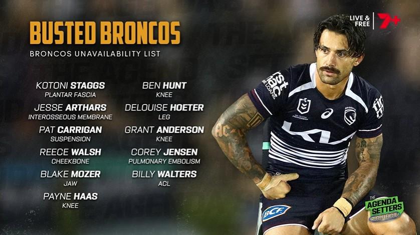 CP: “The Broncos, 21 – 20 against the Tigers, but it has come at a huge cost. 13 players unavailable for this weekend’s game up against the Bulldogs.”