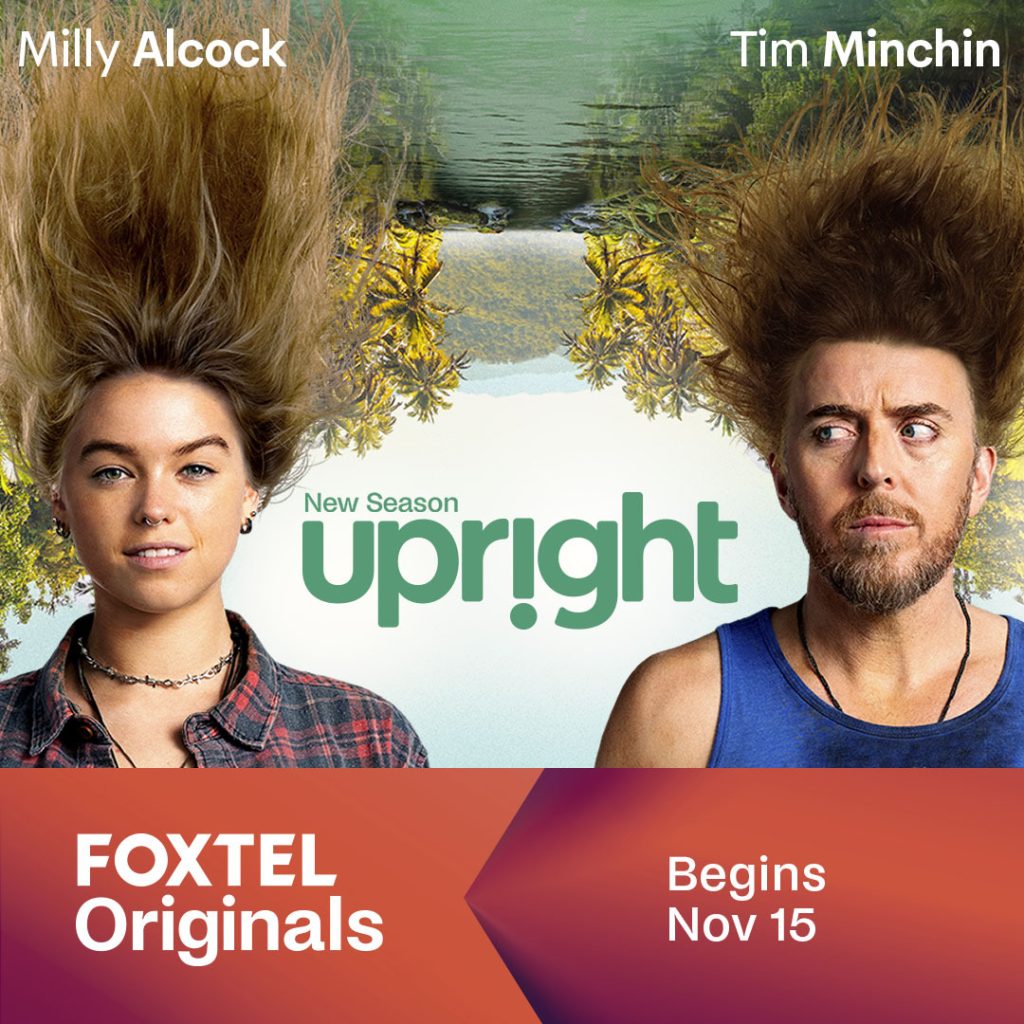 Lucky and Meg will once again hit the open road on Tuesday November 15 with the season two premiere of FOXTEL Original series UPRIGHT – starring critically acclaimed musician, comedian, actor and writer Tim Minchin (Californication), and Milly Alcock (House of the Dragon).
