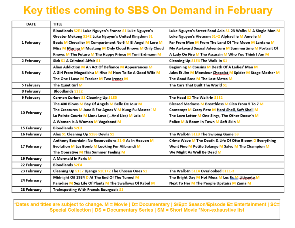 Wednesday, 1 February 2023 SBS & SBS On Demand (new episodes coming weekly)